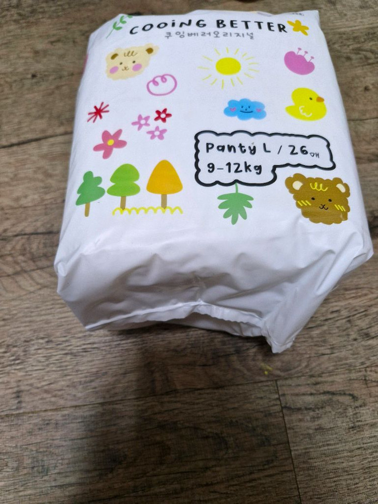쿠잉기저귀입니다 9k킬로 12k입니가 26개들어있어요 팬티입니다 새것입니다