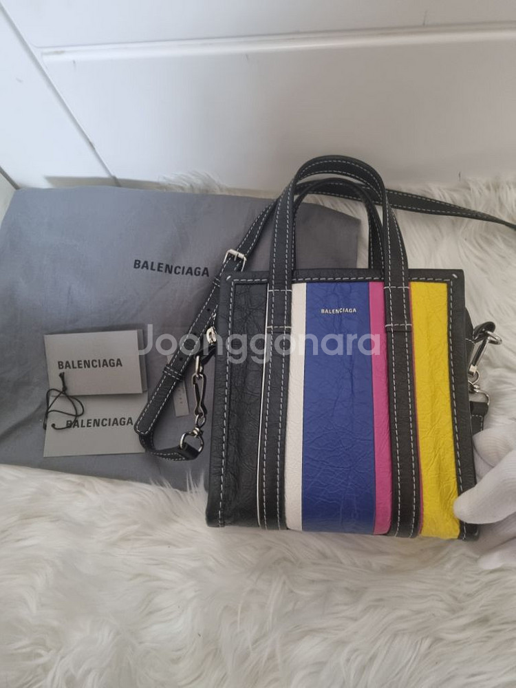 **실례인줄 알지만 구입의사 결정되신 분만 톡 보내셨으면 합니다 교환 신청 No 무리한 가격인하 요청은 하지 말아 주시길요 제발요 감사합니다** 정품 발렌시아가 스트라이프 바자백 XXS 입니다 (사이즈 꼭 확인하세요) 밑가로 17 너비 10 높이 18 입니다 롯데홈쇼핑에서 구입하고 1번 착용이라 매우 깨끗하고 하자 전혀 없습니다 일련번호는 가방 포켓 안쪽에 있어서 사진으로 찍지를 못했지만 정품 맞습니다 모두 무보정 실사 사진이니 꼼꼼하게 확인하시고 구입하세요 정품이 의심스러우시면 정품의뢰 꼬옥 받으시길 추천드립니다 만일 원하시면 한국명품 감정원이나 라울스 등에 제가 보내고 구매자님은 검증 완료 후에 수령하실 수 있으세요 검사비용 3~4만원은 구매자님 부담이세요 만일 정품이 아닐 경우 전액 환불 및 택배비용 검사비용 등 부대비용 다 제가 부담합니다 1)안전거래 가능합니다 2)직거래 장소는 서울 6호선 응암역쪽에서 가능합니다만 시간약속 지켜주실 분만 직거래 요청해주세요 3)교환 신청 절대로 안받습니다 4)구입 후 단순변심에 의한 교환 환불은 어려우니 신중하게 생각하시고 구입하세요 감사합니다
