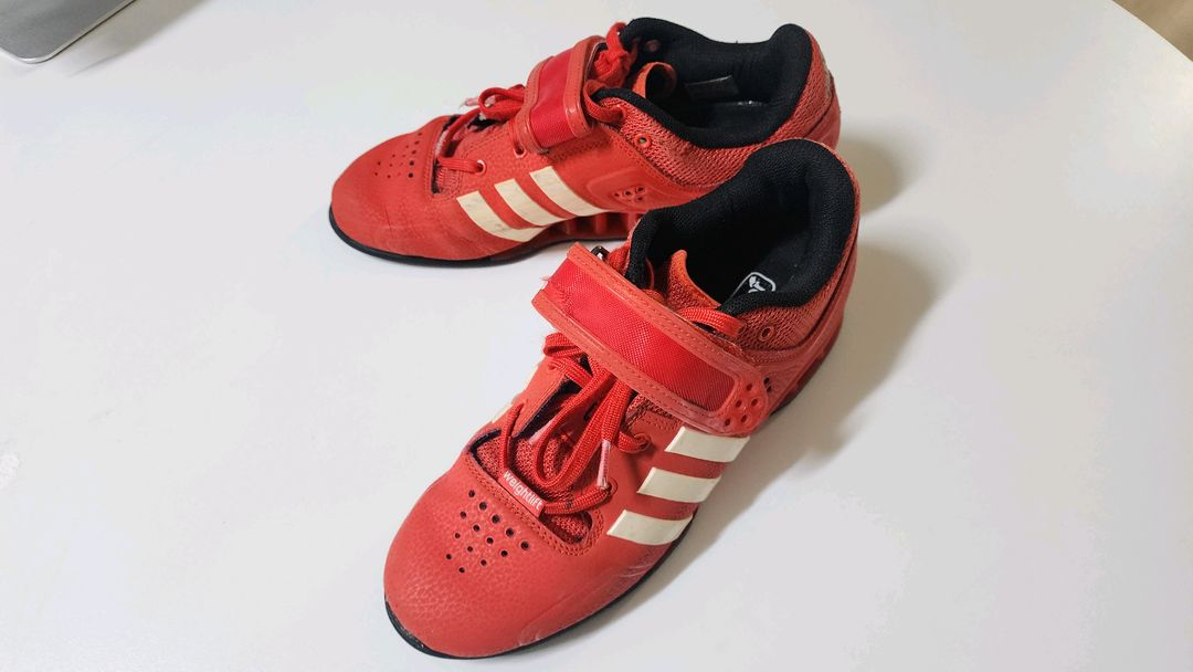 아디다스 아디파워1 판매합니다. 운동 좀 한다 하면 하나쯤은 꼭 신어봤을 만큼 유명한 모델이라 따로 설명이 필요 없는 제품입니다. 착화감이나 안정감은 여전히 좋고, 사용감은 있지만 전반적으로 깨끗하게 관리하며 사용했습니다. ✔ 240(나이키 운동화 사이즈 기준과 동일하게 보시면 됩니다) ■ 상태 안내 빨/검 제품 — 스트랩 망사 부분이 살짝 터졌지만 고정력이나 착용에는 영향 없습니다. 실사용에는 문제 없고, 운동용으로 충분히 좋습니다. 가격은 15만원이며 관심있으신 분 편하게 연락 주세요.