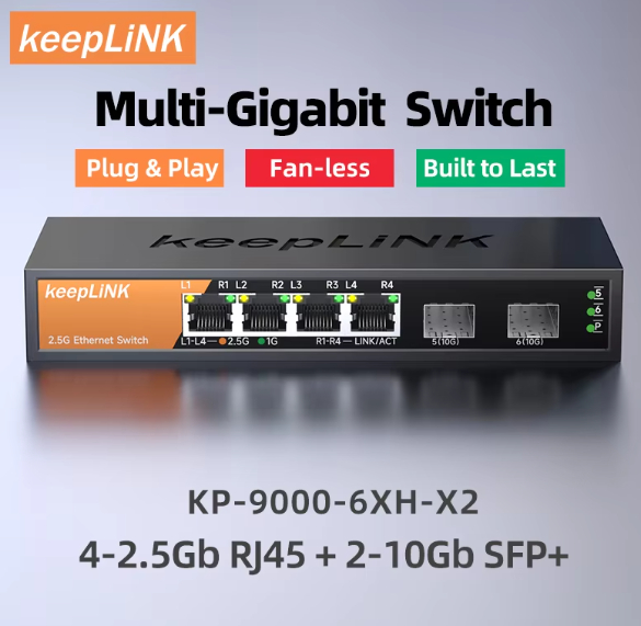 미개봉 새제품입니다. 2.5G 포트 4개: 일반 랜선으로 2.5기가 초고속 내부망 구성 가능. 10G SFP+ 포트 2개: 10기가 광네트워크 확장 지원. Fan-less 무소음: 팬이 없어 소음이 전혀 없으며, 금속 본체라 발열에 강합니다. 플러그 앤 플레이: 별도 설정 없이 꽂으면 바로 작동합니다.