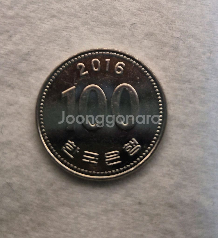 2016년 발행된 100원 동전입니다. 사용감은 있지만 상태 양호합니다. 추가구매가능합니다