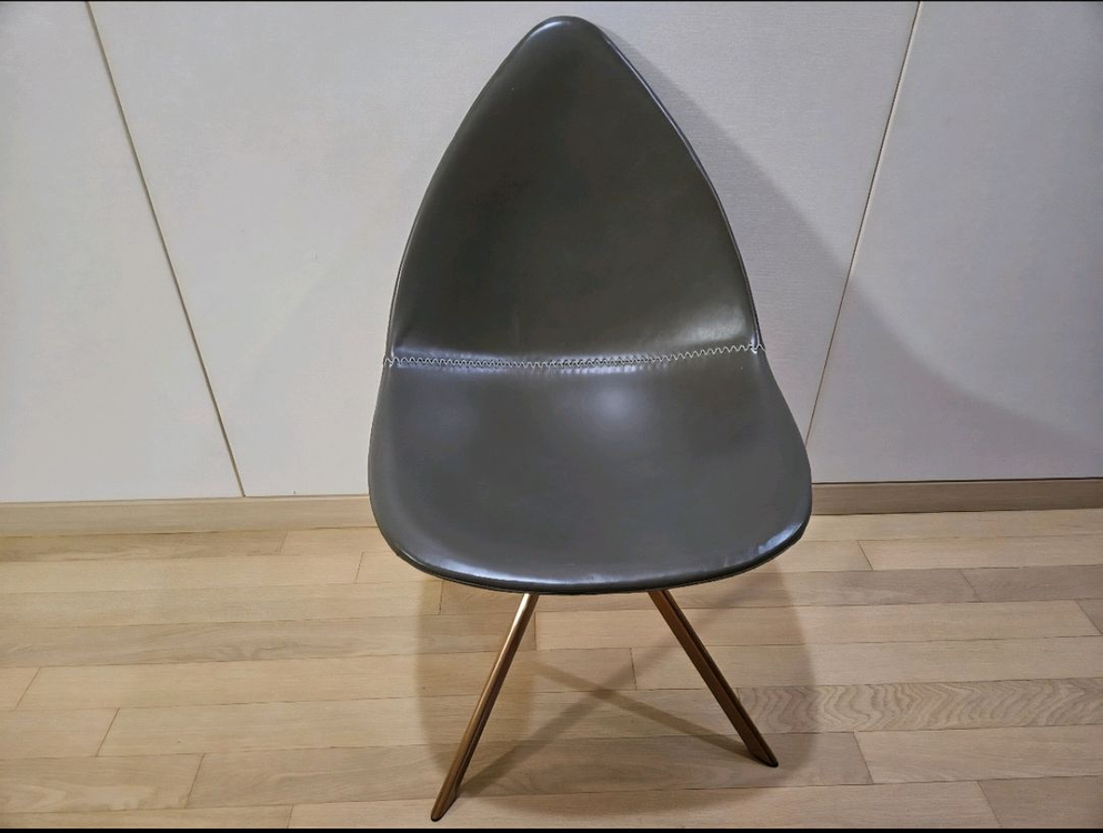 안녕하세요, 세련된 디자인의 가죽 의자입니다. - 색상: 회색 - 감각 있는 삼각형 등받이 - 튼튼한 금속 다리 전체 높이 84cm 좌방석까지의 높이는 45cm 가로 47cm X 세로 40cm 앉았을때 편안합니다. 얼마 안 쓴거라, 상태 깨끗합니다. 직거래 장소는 압구정 구현대 아파트입니다. 연락주세요!