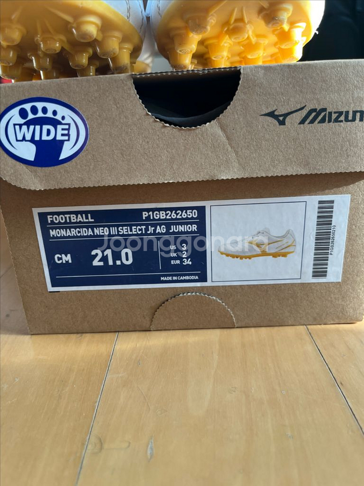 미즈노 주니어 축구화 210 신상이고 발볼 넓은 와이드 버전이예요 반사이즈 작게나왔어요 한번 착용
