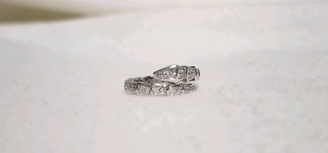 18k 세르펜티링 화이트골드색상 중량 1.27돈입니다 사이즈는10호 입니다 큐빅 세팅이구요 로고각인 다있구요 디자인 잘나왔습니다 우체국 배송비포함 122만원입니다 본품,보증서,케이스 구성