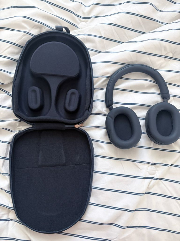 소니 WH-1000XM5 미드나잇 블루 색상 헤드폰입니다 케이스 포함이며, 상태는 사진과 같습니다 - 애어팟만 사용해서 보냅니다