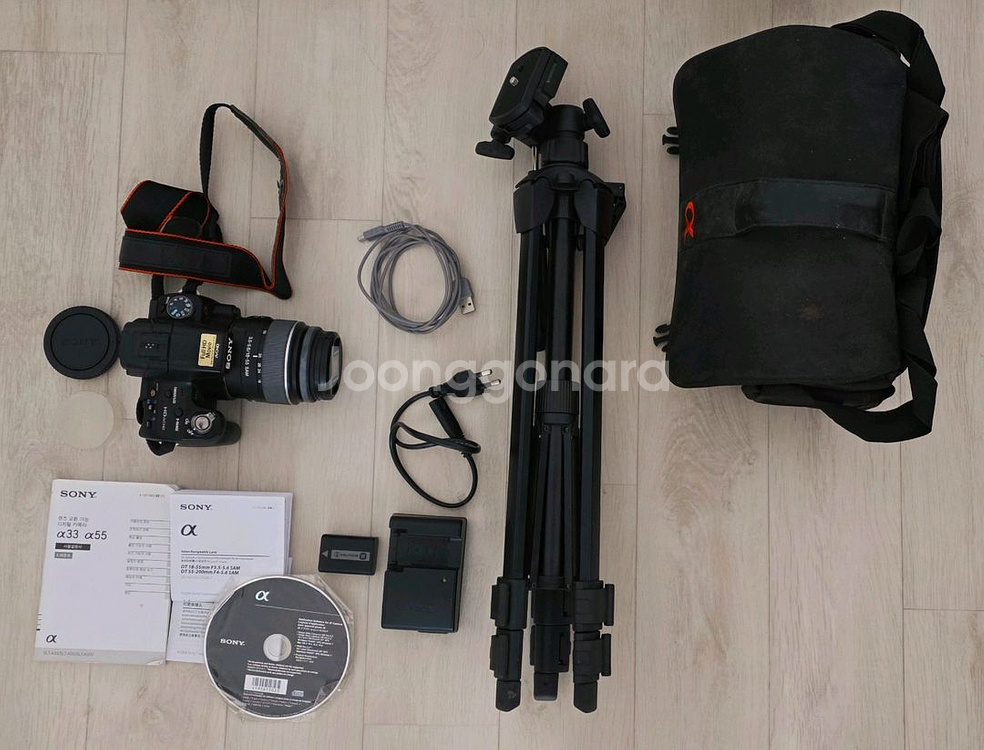 소니 A55V DSLR 카메라 풀세트입니다 - 18-55mm 렌즈 포함 - 삼각대, 가방, 충전기 등 다양한 액세서리 포함 Full HD 동영상 촬영이 가능하며, 다양한 촬영 모드를 지원합니다 세월의 흔적이 있어 어깨끈 및 보관 가방은 약간 헤졌지만 사용하는데 이상없습니다 중요: 배터리 오래갑니다!! 액정에 보호필름 붙어있습니다! 소니정품 Sd카드 16기가 포함입니다! 사진에 있는 삼각대까지 포함한 가격입니다 Dslr 입문하시려는분에게 강추드리는 카메라입니다~~