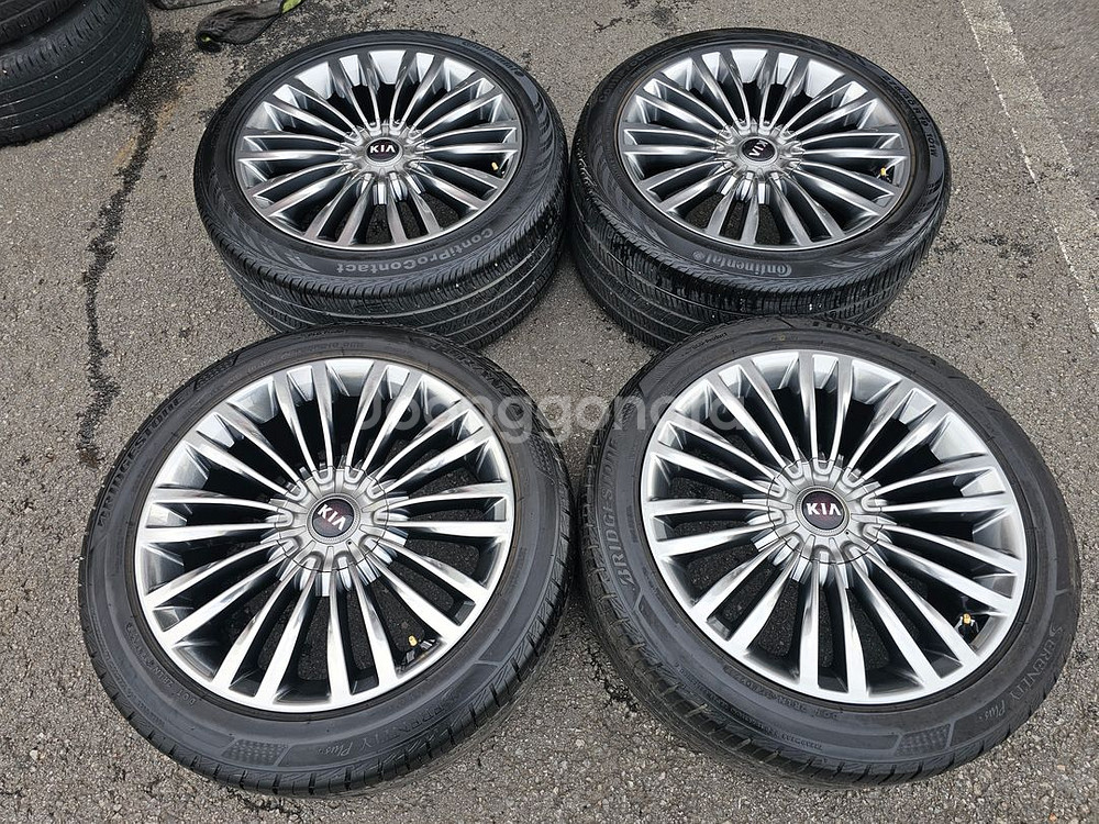 #기아 더K9 19인치 순정 임판급 휠타이어 세트 팝니다. *휠상태 : 크랙,기스,굴절 전혀없고 바란스 이상없습니다. (사진참조) *타이어 : 사이즈는 전 245 45 19 브릿지스톤 80% 후 275 40 19 컨티넨탈70%정도 입니다. 개인차이가 있음으로 타이어 바닥면 확인하세요. (사진참조) *위 치 : 화성시 팔탄면 푸른들판로 747 매장 오시면(장착,바란스,공기압) 무상 서비스로 해드립니다. 추가적인 문의는 별도로 연락 주시면 친절히 상담해 드리겠습니다. * 대품반납조건가격 : 현금가110만원 입니다. (대품상태 따지지 안으며 없을시 연락주세요) * 문의 : 0 1 0 - 8 8 8 8 - 4 9 9 6 (부담없이 전화,문자 주세요.)