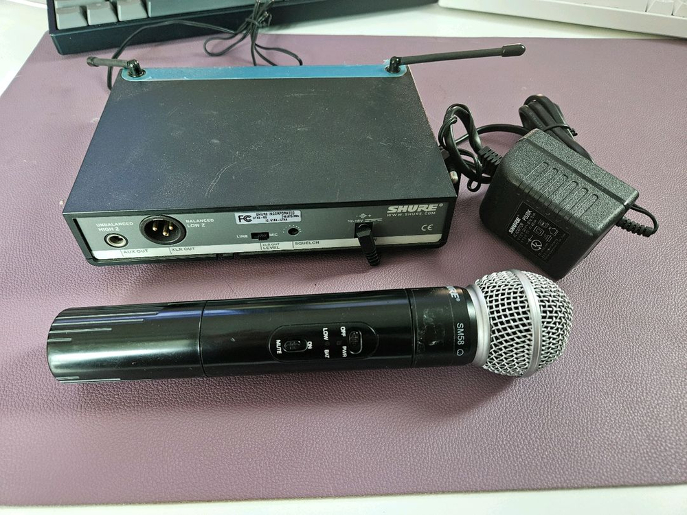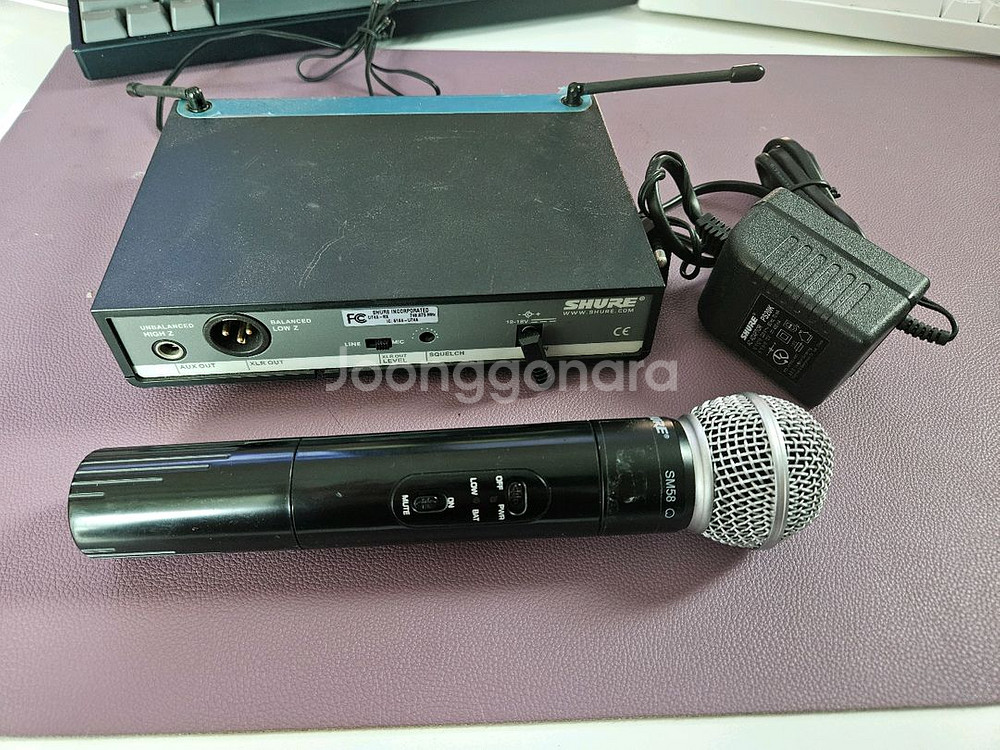 무선 마이크 시스템으로 수신기 포함되어 있어요. 사용감은 있지만 정상 작동하는 상태입니다. 어느정도 네고도 해드릴 수 있으니 연락주세요~