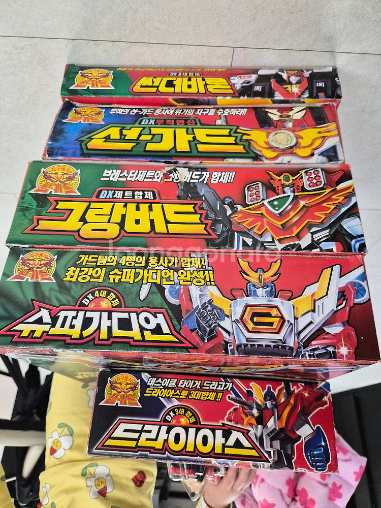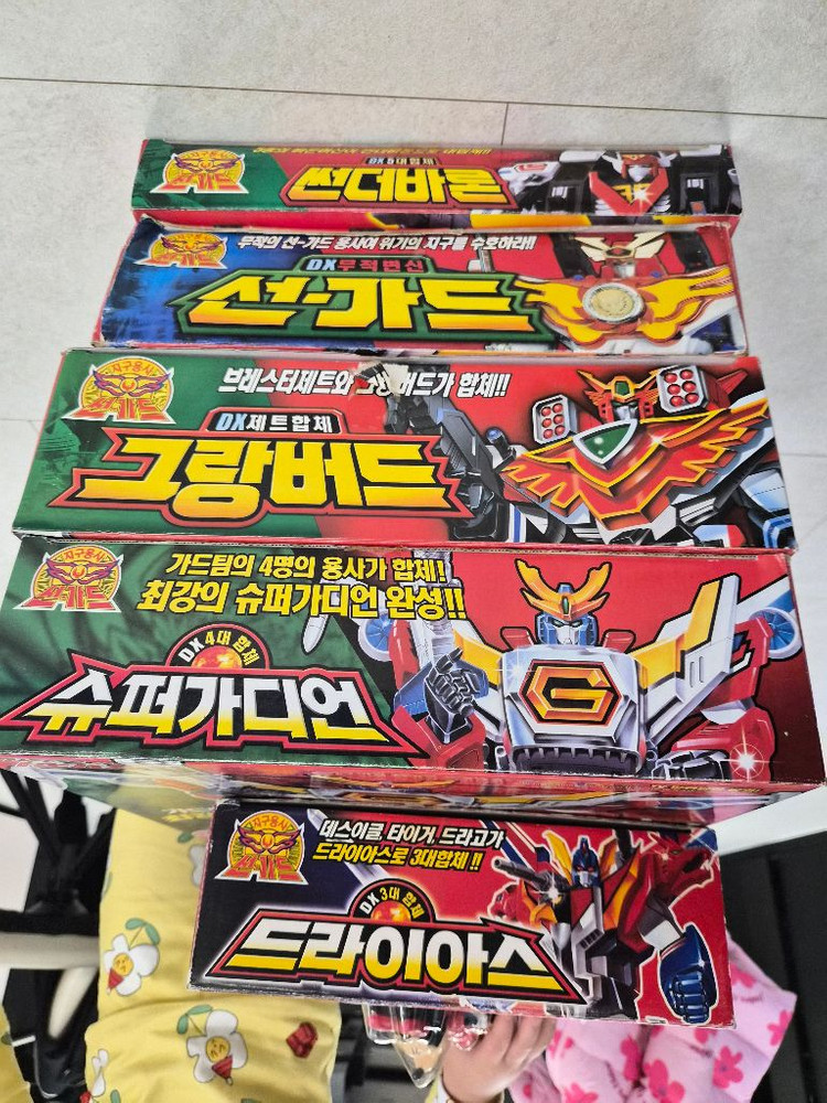지구용사 선가드 DX 국내판 입니다 선가드 그랑버드 썬더바론 슈퍼가디언 드라이어스 분실 및 황변없고 새상품 구매해서 개봉확인후 전시없이 모셔만 두었습니다 일괄로만 판매하고 싶습니다 이유있는 네고 가능합니다