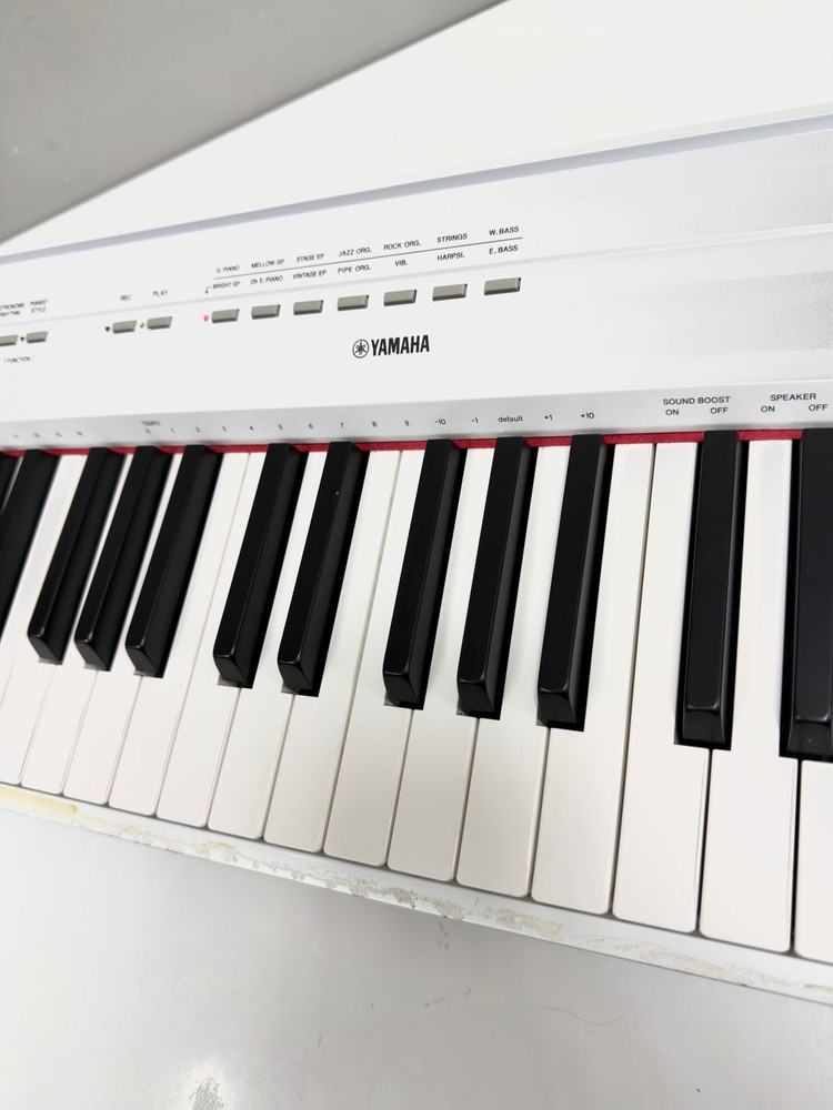 화이트 색상의 야마하 P-115 디지털 피아노입니다. 건반, 다리 모두 포함된 구성입니다. 건반 아랫부분에 약간의 사용감 있는 점 감안해주세요. 별도 문의 없으시면 바로 안전결제 부탁드려요! 야마하 디지털 피아노 P-115WH 모델 판매합니다 - 색상은 화이트입니다 - 다양한 음색과 연주 스타일을 즐길 수 있습니다 - AUX OUT, USB TO HOST 단자를 통해 외부 기기 연결이 가능합니다 - 스탠드 포함입니다 쿨거하시는 분께는 새상품인 서스테인 페달도 함께 드립니다. 구성품은 사진에 나온대로 입니다. 사용감 당연히 있습니다. 민감하신 분은 패스해주세요. 환불 교환X. 신중한 구매 부탁드립니다. 택배 무료배송 직거래 지역 : 서울 방배동