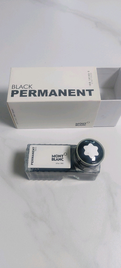몽블랑 잉크 PERMANENT 블랙 판매합니다. 미사용 제품이며 용량은 60ml 입니다. 우체국택배로 보내드려요.