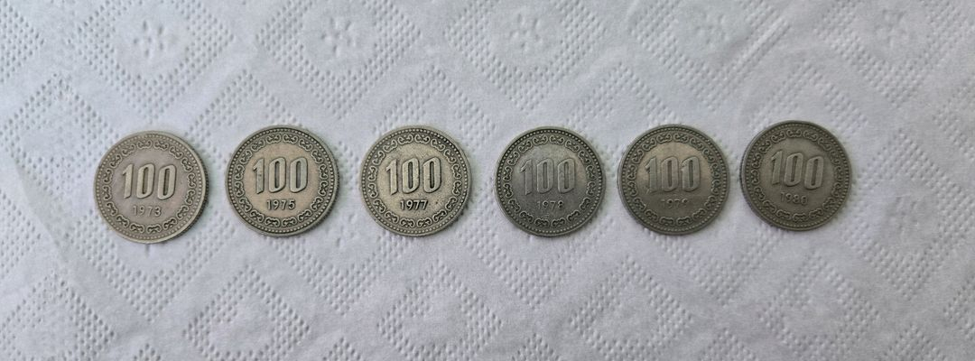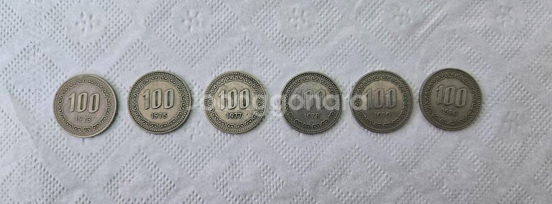 개인정보(거래정보)를 주고받는 행위는 사기에 노출될 수 있으므로 즉시 중고나라로 신고해 주세요100원 동전입니다. 1973,1975,1977,1978,1979,1980 상태는 사진 꼼꼼히 봐주세요 일괄로만 판매합니다 반품불가입니다.