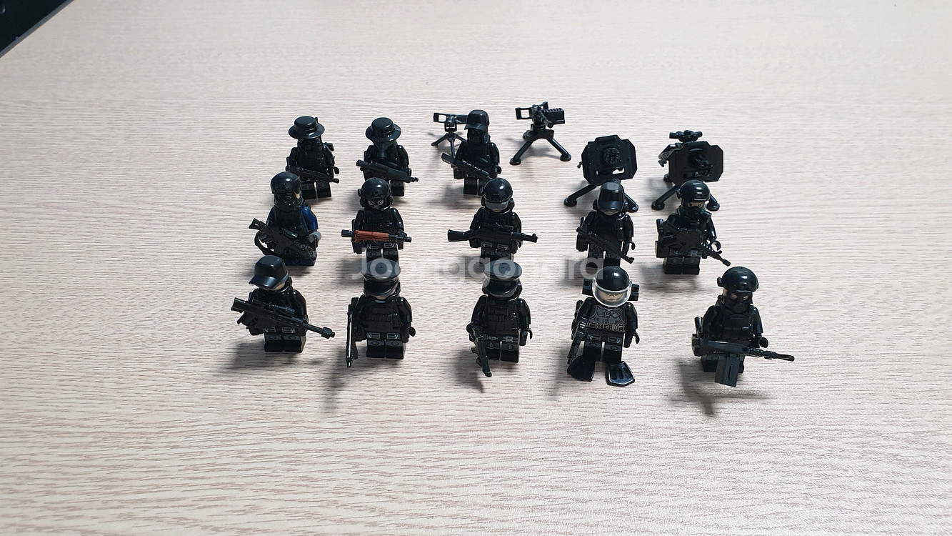 레고 호환 경찰특공대 미니피규어 13개 세트입니다. 다양한 무기 및 보안경, 방독면 등 소소한 커스터마이징을 추가했습니다. 상태 매우 깨끗하고 개별 비닐포장하여 보관하고 있습니다.