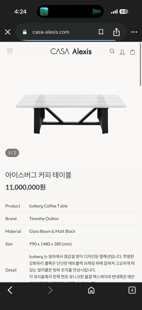 개인정보(거래정보)를 주고받는 행위는 사기에 노출될 수 있으므로 즉시 중고나라로 신고해 주세요시그니처 아이스베그 커피테이블이에요. 유리 상판과 블랙 프레임의 조합이 모던하고 세련된 느낌을 줍니다. 거실 인테리어 포인트로 딱 좋은 아이템이에요! 사용감이 살짝있어서 저렴하게 올려봅니다