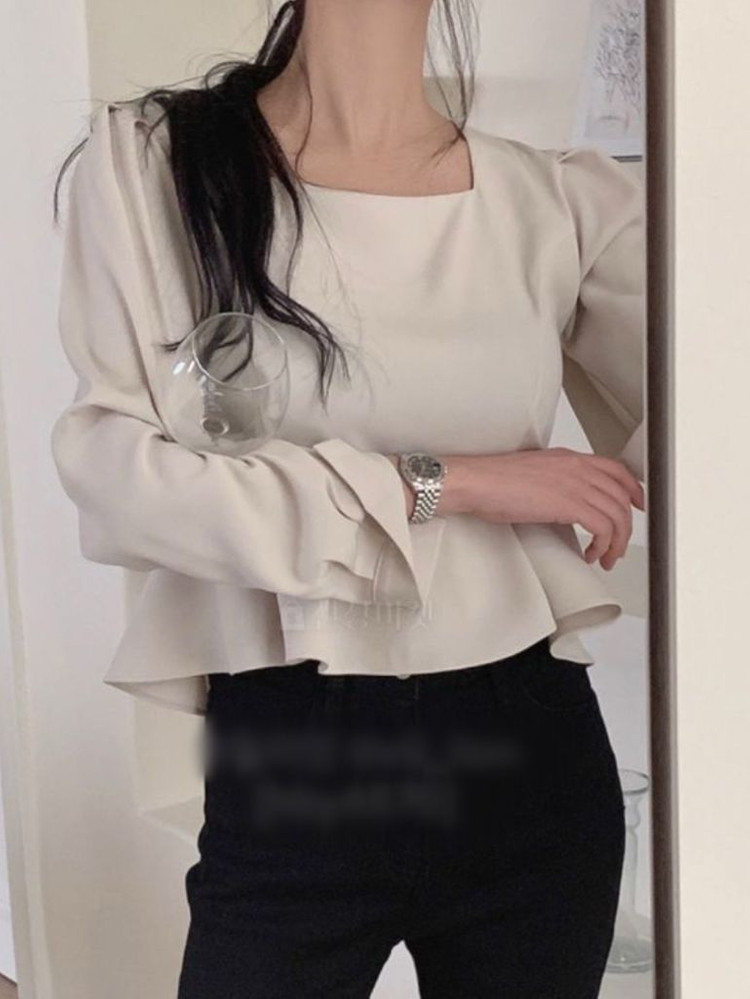 (무료배송) 스퀘어넥 프릴 퍼프 블라우스 아이베이지