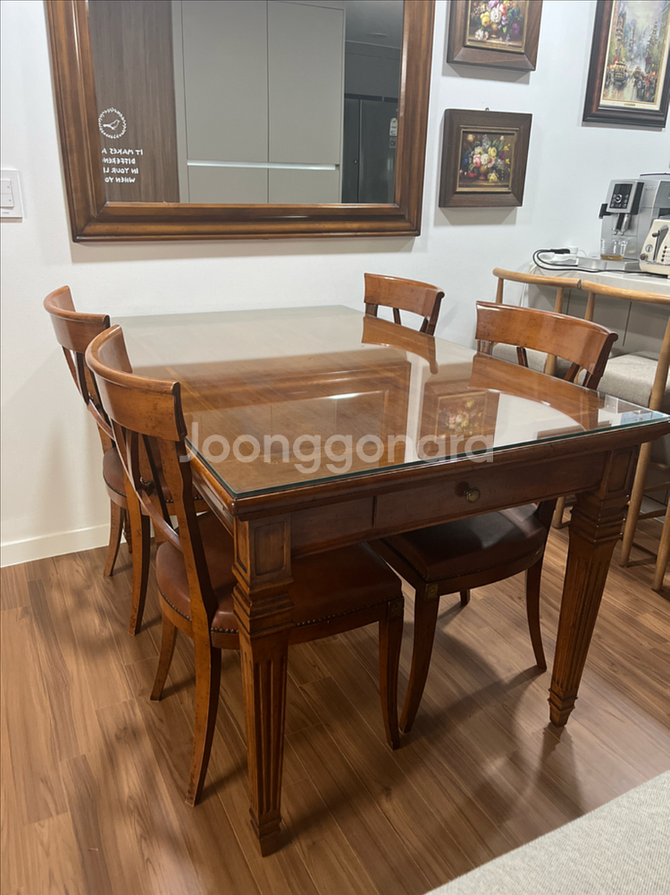 서울 강남 논현동 아르데코 이태리 수입 가구 매장 구매예요 전통 깊은 브랜드로 가격대 상당히 높아요 식탁과 의자 따로 구매해서 의자 5개 같이 드립니다 식탁 사이즈 139x89x79 식탁과 의자 퀄리티 디테일 섬세하고 의자 가죽 또한 하이 퀄리티로 쿠션감 탄탄해서 편한 의자입니다 이동은 구매자분께서 진행해주시면 됩니다 가구 옮기시는 분 알고 있어 원하시면 연락처 드릴 수 있습니다 지역은 시흥 정왕동입니다 꼭 구매의사 있는 분만 연락주세요 에눌 교환 환불 문의는 안받습니다 **매너지켜주세요**