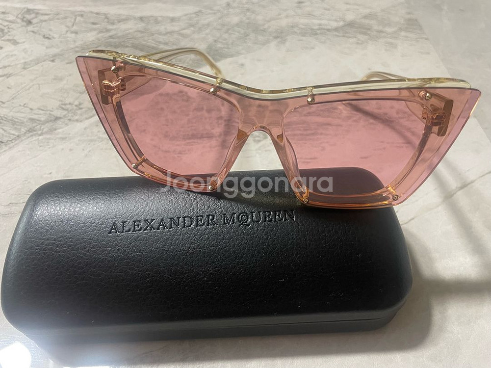 알렉산더 맥퀸 정품 핑크 선글라스예요. 가장최근에 사서 쓰지도 않고 모셔뒀네용 로즈골드 프레임과 핑크 렌즈가 정말 예쁘고, 전용 케이스도 함께 드려요. 카포 드립니다 상태