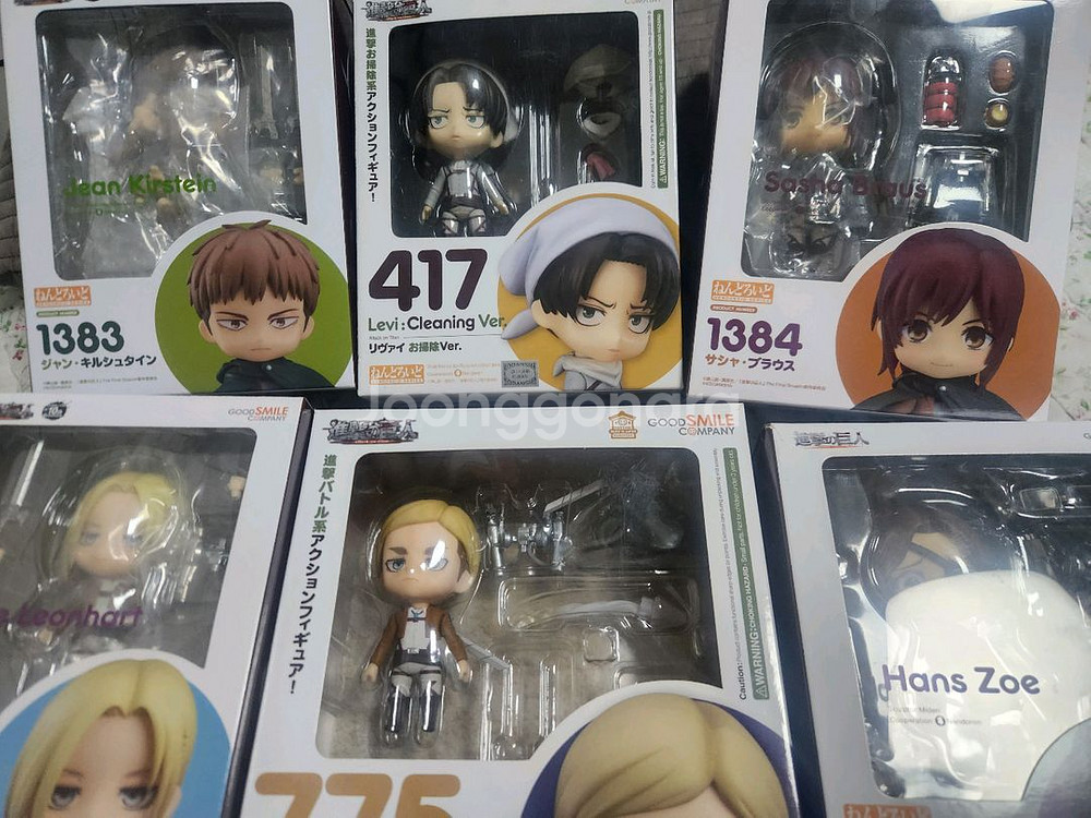개인정보(거래정보)를 주고받는 행위는 사기에 노출될 수 있으므로 즉시 중고나라로 신고해 주세요진격의거인 넨도로이드 청소리바이 23 판완 엘빈 12 판완 한지 8 쟝,애니,사샤 15 판완 스왓챠오 리바이 8 판매합니다