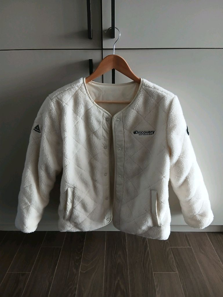 디스커버리 익스페디션 양면 퀼팅 플리스 자켓입니다 - 사이즈는 90입니다 - 색상은 아이보리입니다 양면으로 착용 가능하며, 퀼팅 디자인이 특징입니다 보온성이 뛰어나고 활동성이 좋아 간절기에 입기 좋습니다