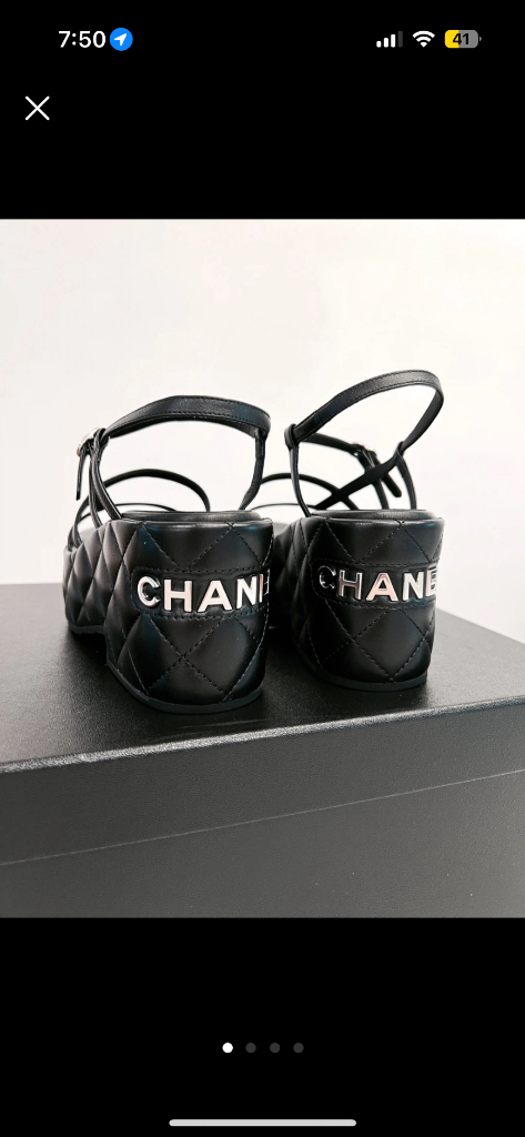 샤넬 블랙 퀼팅 플랫폼 샌들 35사이즈 뒷면에 샤넬 로고가 은장 포인트로 들어가 있습니다 트렌디한 디자인으로 어떤 룩에도 잘 어울려요. 박스포장+쇼핑백 그대로 보내드립니다. ☑️소장 목적으로 구매했던 상품들이 많아 이번 기회에 처분하려 합니다. 관심있는 제품 있으시면 편하게 가격제안도 문의 주시고 택배나 직거래도 가능합니다. ☑️직접 매장 구매한 정품입니다. 직거래시 예약금 받습니다. 서로 믿고 구매하실분과 거래하고싶어요. 반품환불x