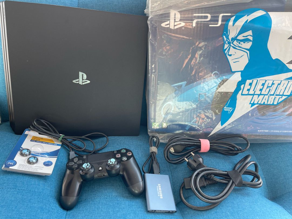 PS4 Pro 1TB 풀박스 세트 판매합니다 - 구성품: PS4 Pro 본체, 듀얼쇼크 컨트롤러, 삼성 Portable SSD T5 500GB - 풀박스 구성이며, 상태는 사진과 같습니다 - HDMI 케이블과 고양이발 드려요 - 게임타이틀 9개 포함합니다 (고스트오브쓰시마/ 더라스트오브어스 파트2/ 갓오브워/ 언차티드 잃어버린유산/ 니오/ 어쌔신크리드 오리진/ 어쌔신크리드 로그/ 오딘스피어/ 페르소나5) 남편몰래 처분합니다 게임타이틀은 제가 아는대로 적은거라 위 이름과 조금 다를 수 있습니다