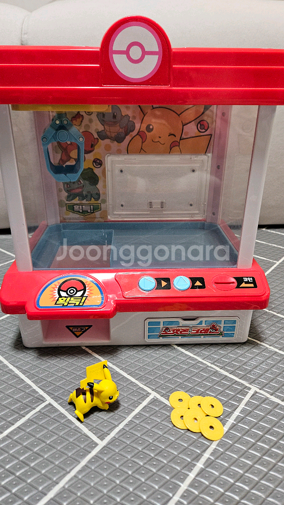 아카데미과학 포켓몬 크레인 인형뽑기 기계입니다 피카츄피규어+동전6개 구성 아이들이 정말 좋아하는 제품이에요 멜로디 잘나오고 작동도 잘되요 원하시면 가품포켓몬 피규어들도 함께드립니다 직거래 배곧