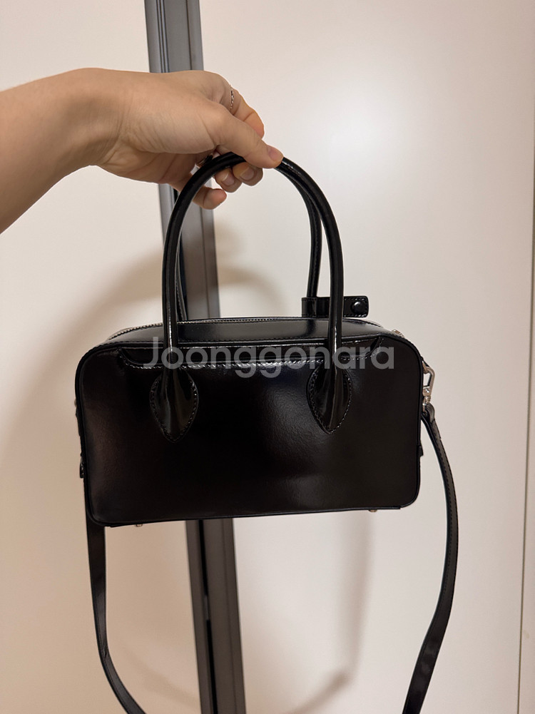 드메리엘 볼링백 미디움 사이즈 입니다(블랙) 에나멜 광이 포인트고 구매 후 실착용 횟수가 많지 않아 상태 좋습니다!