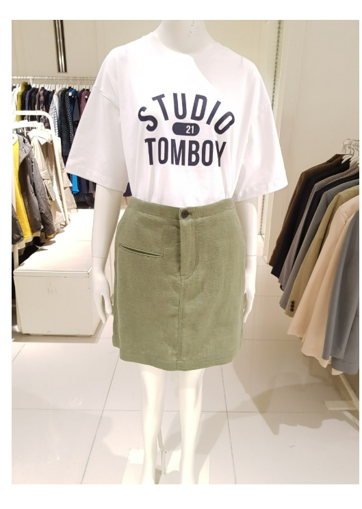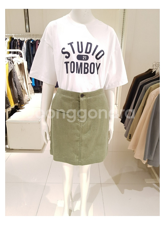 스튜디오 톰보이 카키 린넨 스커트 66정도 연한 카키컬러의 얇은 린넨소재로 여름에 적당 지퍼 여밈, 포켓, 허리 안쪽 조임줄, 살짝 A라인의 미니 기장 린넨이라 자연스러운 잔주름 잡힘은 있고 전체적인 컨디션 양호한 편 . 사이즈 허리단면 39 뒤 가운데 기장 43.5 70-94사이즈로 66정도이고 하의는 실측 확인해주세요