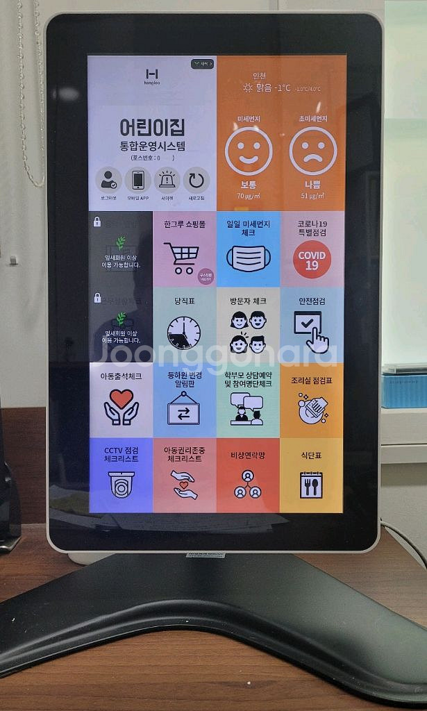 태블릿, 책상 거치대, 벽부착 브라켓, 현재 사용중으로 정상 작동하는 상태입니다. 설치 후 바로 사용 가능합니다.(어린이집, 유치원) 폐원 예정이라 저렴하게 판매합니다.