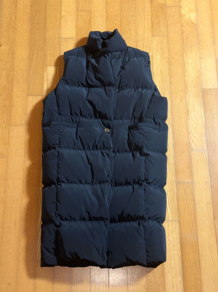블루마틴(BLUEMARTIN) 롱 패딩 조끼 블랙 깔끔한 디자인의 롱 패딩 베스트입니다. 하이넥 디자인으로 단정한 느낌이며, 롱 기장이라 보온성과 스타일을 함께 잡을 수 있는 제품입니다. 코트 위 레이어드용으로도 좋고, 니트나 맨투맨 위에 가볍게 걸치기에도 부담 없습니다. 유행 타지 않는 기본 블랙 컬러라 활용도 높습니다. 충전재: 오리털 80% / 깃털 20% 가볍지만 충분한 보온감 있습니다. - 실측 사이즈 • 어깨 42 • 가슴 56 • 총장 109 거의 착용하지 않아서 상태 매우 좋습니다. 직거래 및 택배 가능합니다. 편하게 문의 주세요. * 배송비 무료입니다 * 여러 상품 구매시 할인됩니다 * 더 보고싶으신 부분 사진 요청하시면 바로 찍어 보내드립니다 * 로젠택배로 안전하고 빠르게 보내드립니다 * 구매자분께서도 기분 좋은 거래가 되었으면 좋겠습니다