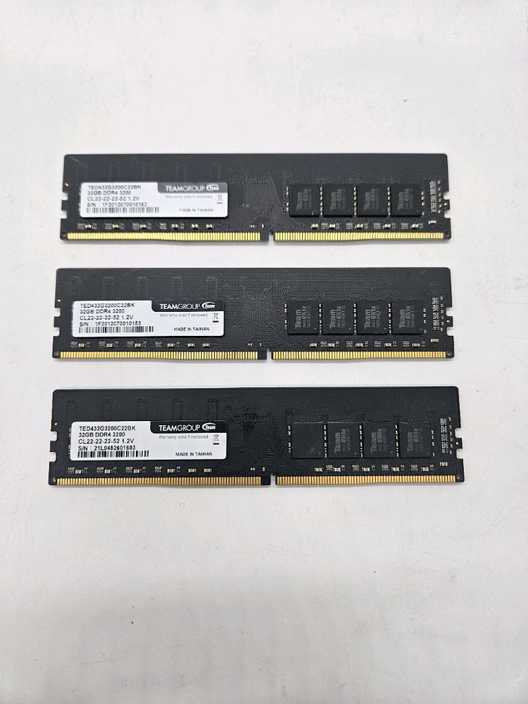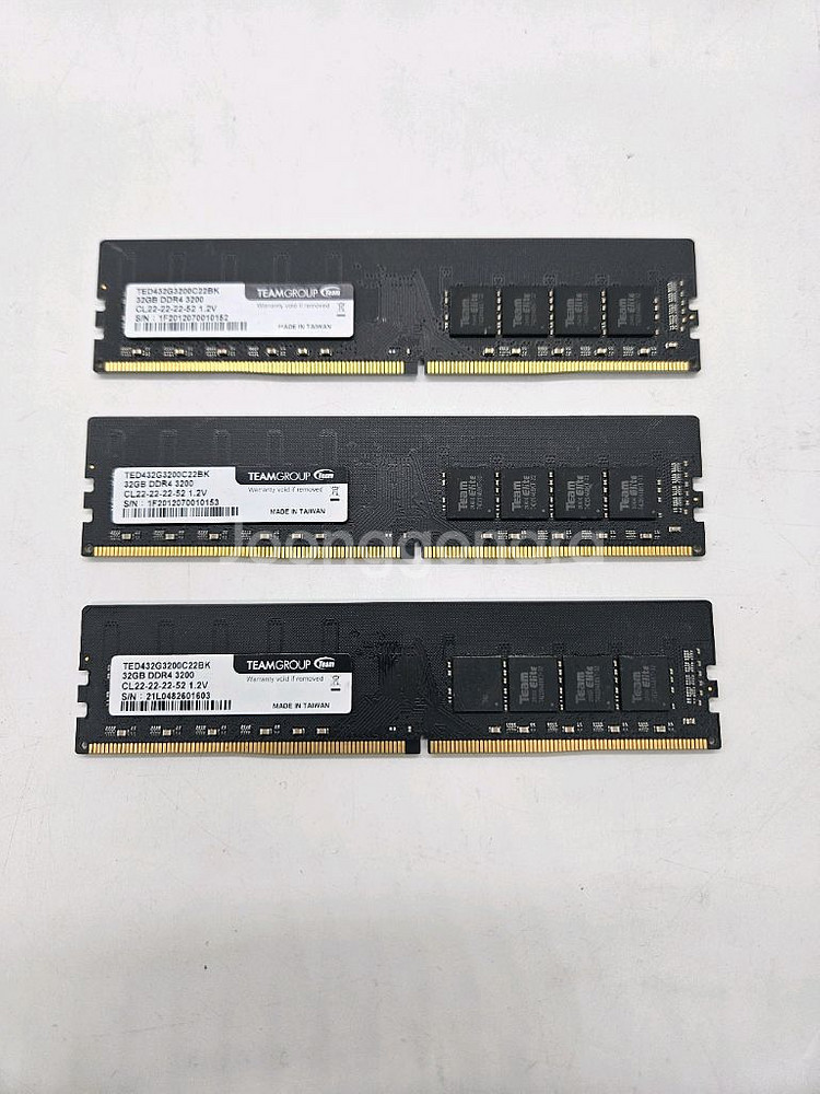 1. 제품 상세 정보 제조사: TeamGroup (팀그룹) 모델명: TED432G3200C22BK 용량: 32GB (단일 스틱) 규격: DDR4-3200 (PC4-25600) 램 타이밍: CL22-22-22-52 전압: 1.2V 2. 상태 및 사용 기간 외관 깨끗하며 인식 및 작동 아주 잘 됩니다. 데스크탑 업그레이드로 인해 탈거하여 보관 중입니다. 고용량 작업(영상 편집, 가상 머신, 고사양 게임) 하시는 분들께 강력 추천드립니다. 개당 가격입니다 여러개를 보유 중이라 수량 조절 가능합니다. 복수 문의는 연락주세요.