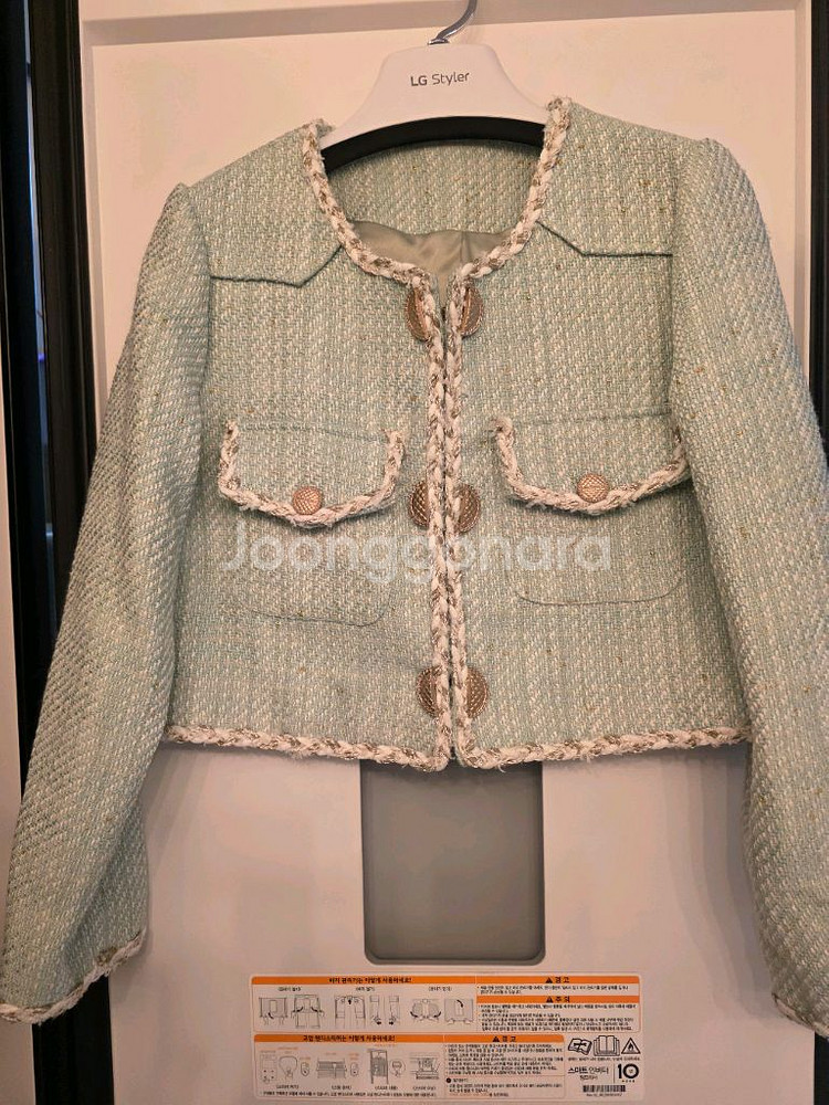 민트색 트위드 크롭자켓입니다 44~55. 가능 제가 55입습니다. 봄, 가을, 초봄까지 입을 수 있고 빈티지 스타일로 독특한 매력이 있어요 9만원대. 구매후 2번. 잠깐씩. 착용 컨디션 최상입니다. 총길이 44, 가슴 45, 소매. 64 직거래, 택배 다 가능 중고거래 특성상 교환,환불 안됨