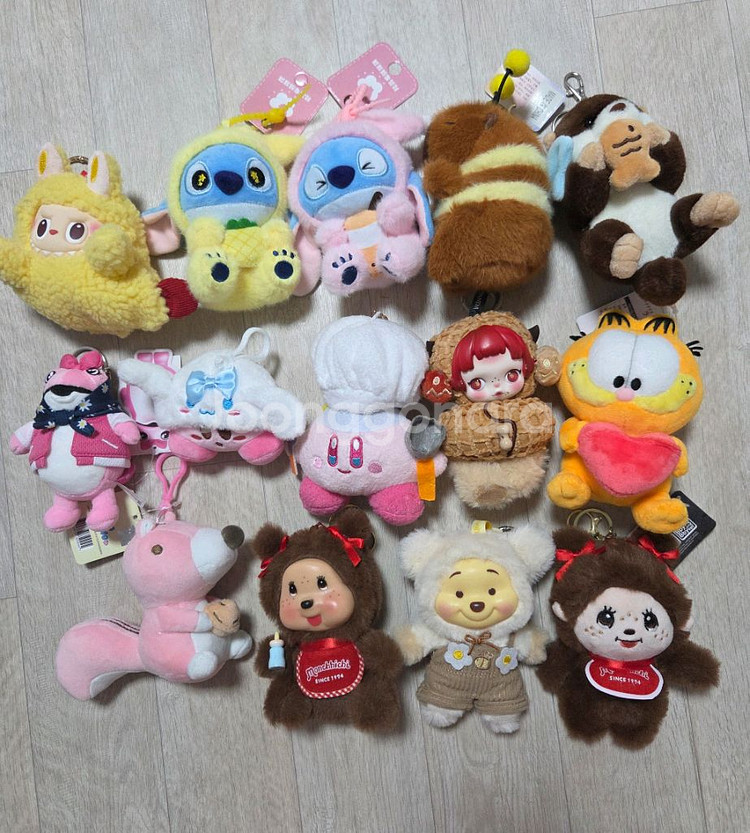 1. 새우라부부 (택x) 2. 스티치 노랑/ 분홍 3. 카피바라 (줄 당기면 날개 파닥파닥 움직임>_<) 4. 붕어빵이좋아 랏코상 5. 진로 소주->(*거래완료) 6. 시나모롤 별의 커비 (택x) 7. 요리사 별의 커비 (택x) 8. 스컬판다 날찾아봐 꾸러기땅콩 (택x) 9. 가필드 10. 보노보노 포로리 11. 젖병 든 몬치치 (택x)->(*거래완료) 12. 곰돌이 푸우 라부부 (택x) 13. 양갈래 몬치치 (택x) ☆택 없는건 제거가 아닌 원래부터 없는 상품입니다 • 호성동 비대면 거래 (문고리) 🌟새상품, 택O 🌟네고 ❌️ 찔러보기 ❌️ 차단 🌟페이 ⭕️ 계좌 ⭕️ 🌟선입금 후 예약 가능‼️ 🌟중고거래 특성상 교환 및 환불 불가능‼️ 🌟판매상품 많습니다 🌟제가 있는곳으로 직접 오셔야 합니다 🌟택배비 별도