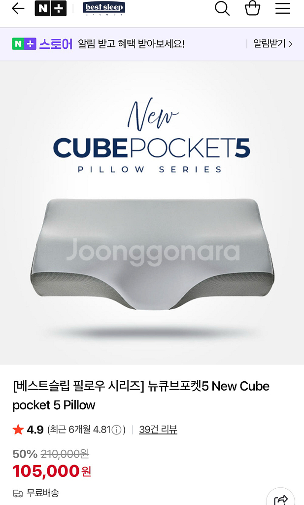 베스트슬립 큐브포켓5 New Cube Pillow 입니다 미개봉 새제품이며 105000원짜리 80000원에 판매합니다 (배송비별도) 네고 불가합니다!