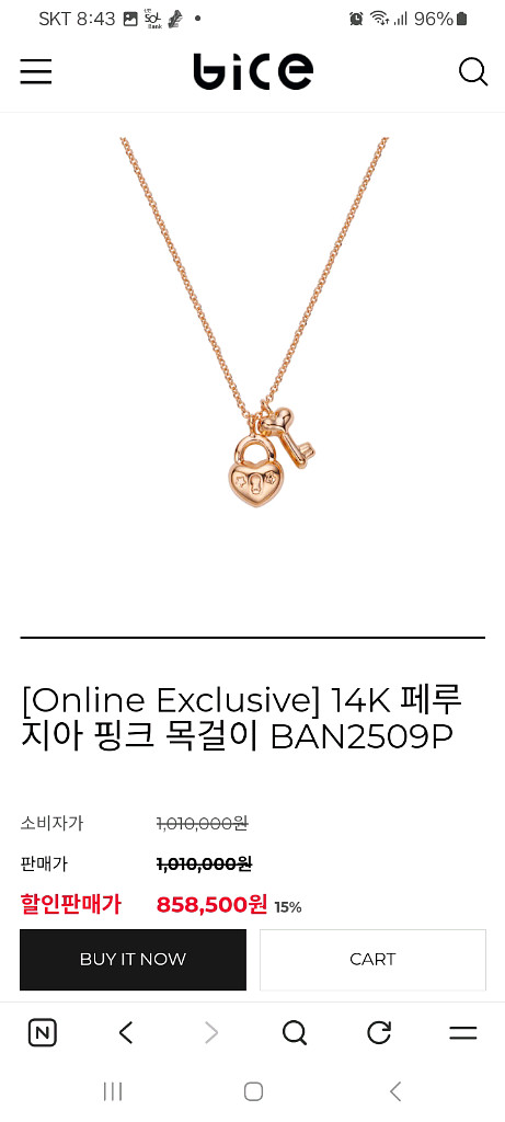 백화점 비체14k 로즈골드 목걸이입니다. 상태는 거의 안해서 깨끗합니다. 줄은 비체 상품이 아닙니다. 펜던트만 하실경우 60 입니다.