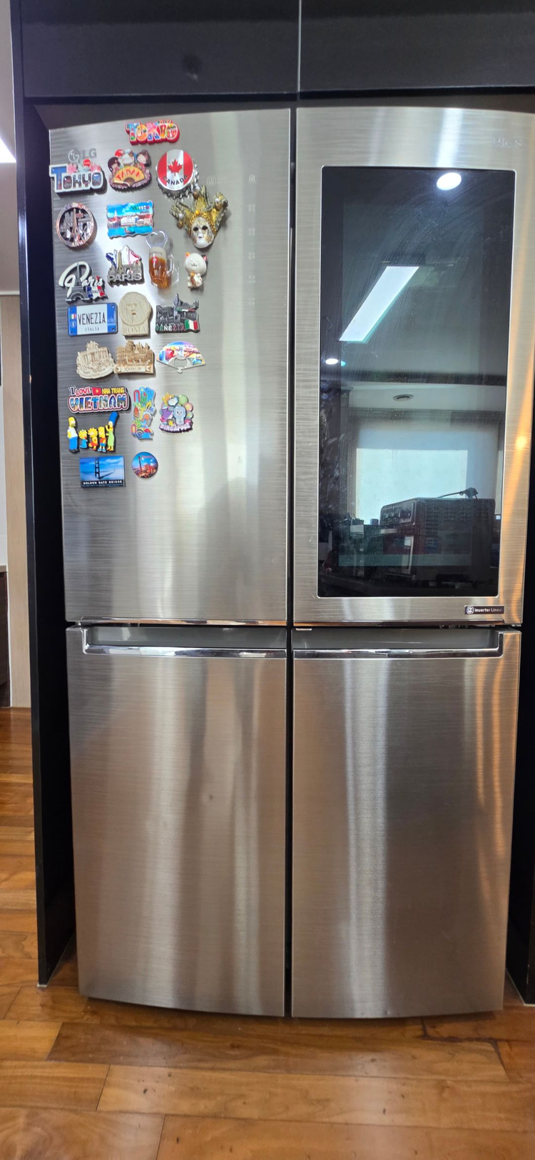 4도어 냉장고 판매합니다. 스테인리스 외관으로 깔끔하고 고급스러워요. 사용감은 있지만 정상 작동하며 실용적으로 사용 가능합니다. LG 디오스 노크온 사용감 있어요 4월1일 오시면 사다리차로 내려 드려요 전화나 문자 부탁드립니다 010-9104-1241