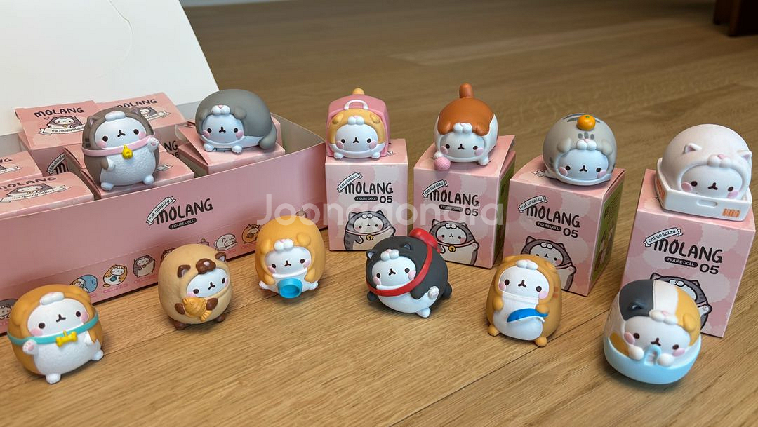 귀여운 몰랑이 피규어 12개 상자째 보관만 하던 새상품입니다 큰 박스는 색바램 찢어짐 있고 개별 박스는 사진찍을려고 꺼내다가 2개 개봉입구 조금 찢겨졌어요(사진참조) 몰랑이들은 처음 꺼내본 새것들 입니다 사이즈는 각티슈랑 비교사진 보시면 됩니다