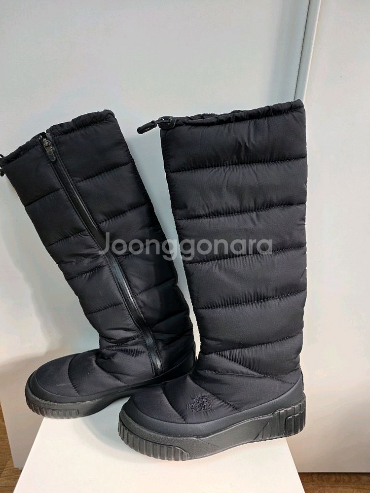 블랙 패딩 롱부츠예요. 따뜻하고 실용적인 겨울 필수템으로 상태 양호합니다. 높은 굽이라 보온성도 좋아요! 노스페이스 여성 패딩 부띠 캠프 하이 롱부츠입니다 - 모델명: NS99L63A - 사이즈: 240mm 패딩 소재로 되어있어 따뜻하고 편안하게 신을 수 있습니다 겨울철 방한용으로 좋습니다 착용감많이없어 하자나오염없이 깨끗한 상태입니다