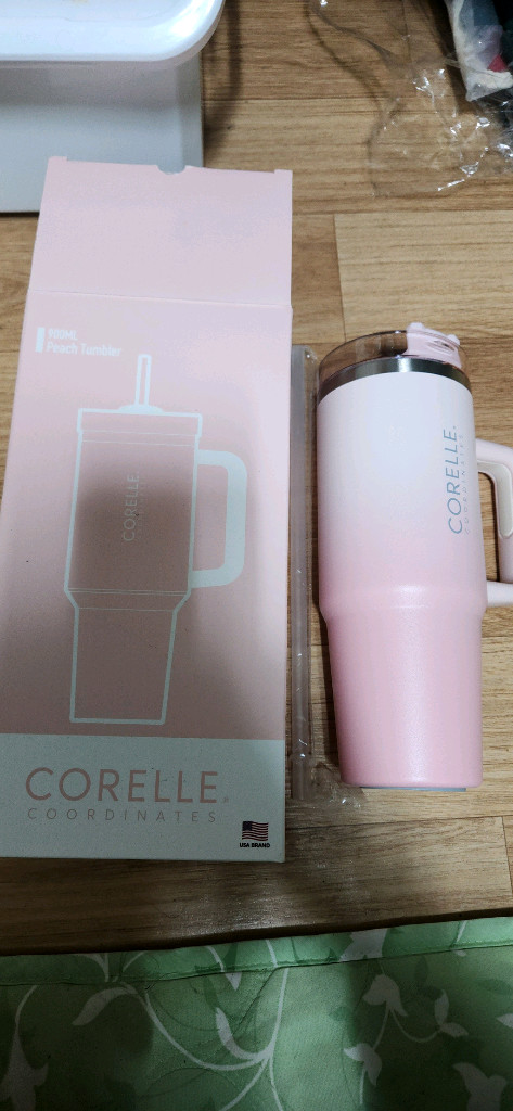 코렐 코디네이츠 피치 텀블러 새상품입니다 용량은 900ml 입니다 빨대포함 보관한 새제품입니다