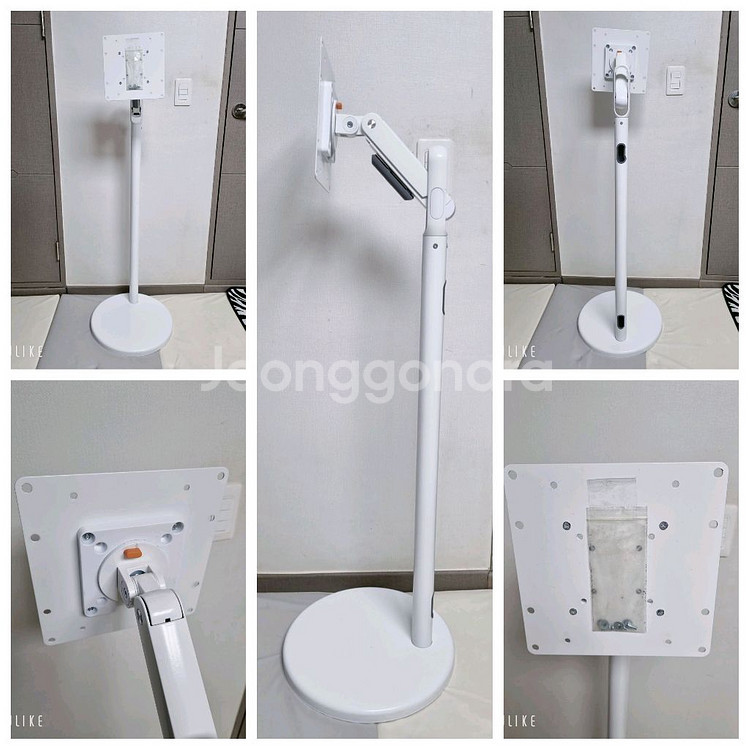 화이트 색상의 모니터 또는 TV 스탠드입니다. 바닥에 두고 쓰는 받침대 형태입니다. 거치대 볼트도 같이 드려요. 문의 없으시면 바로 안전결제해주시면 됩니다! 60인치까지 거치 가능합니다 직거래 경기도 김포 마산동