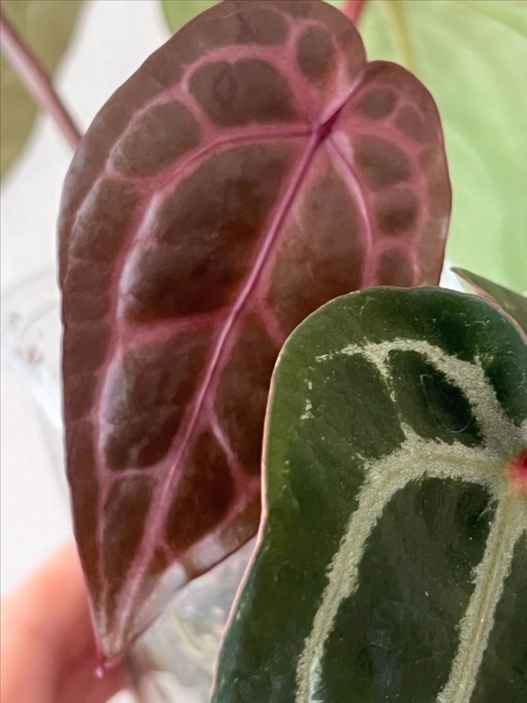 닥터블락 미쉘x자라 잎4장이에요 3장이 구엽이라 약간 상한부분 있어요. 뿌리 많고 큰잎15cm 신엽은 아직 커지는 중인데 순화 첫잎부터 크게 나왔어요. 마지막 사진이 이전 모주에요. 벌브번식한 개체에요 궁금한 점은 문의 주세요~