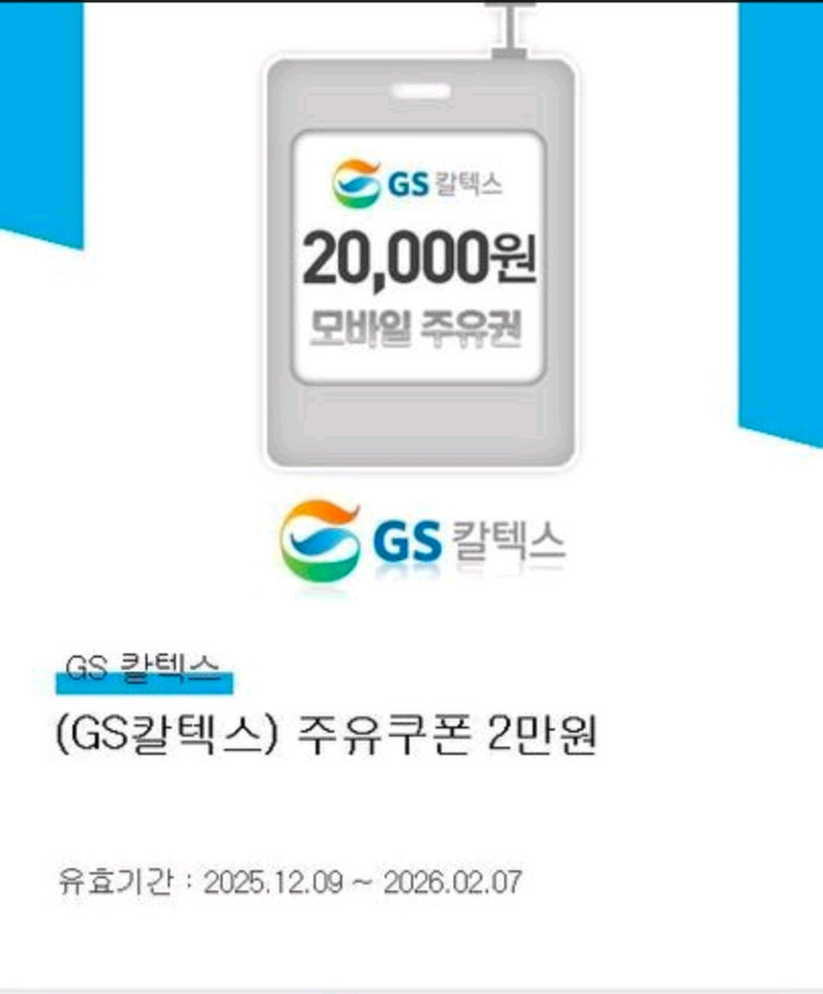 개인정보(거래정보)를 주고받는 행위는 사기에 노출될 수 있으므로 즉시 중고나라로 신고해 주세요편의점에서 사용 가능한 2만원 주유쿠폰이에요. 유효기간은 2025년 12월 9일부터 2026년 2월 7일까지입니다. 오늘까지라 16500입니다 에눌해달란말하지마세요