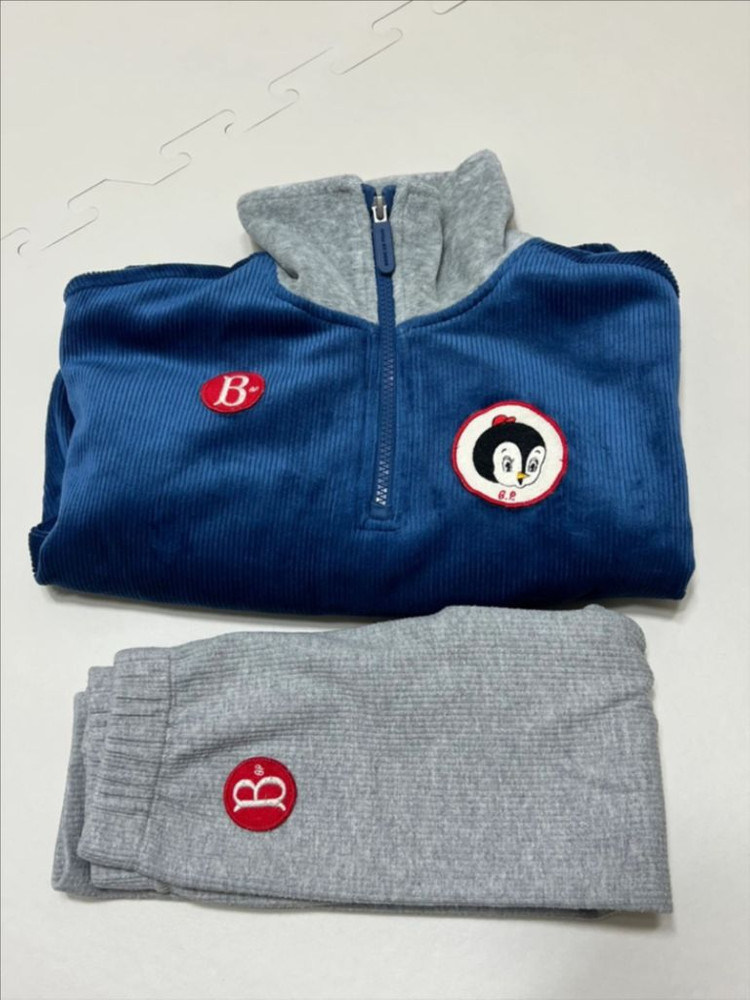 베베드피노 상하복 세트입니다 부드러운 코듀로이 소재로 되어있어 촉감이 좋아요 펭귄 로고가 귀여움을 더합니다 편안한 착용감으로 활동하기 좋습니다 보온성이 좋아 따뜻하게 입을 수 있어요