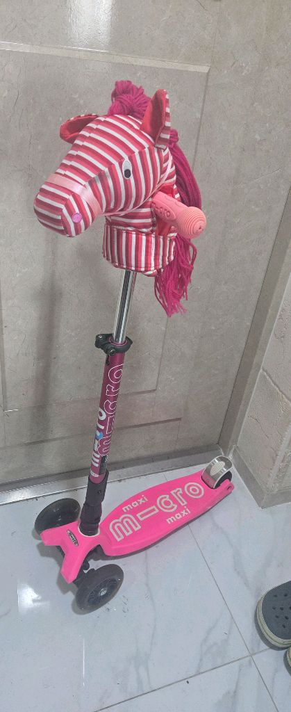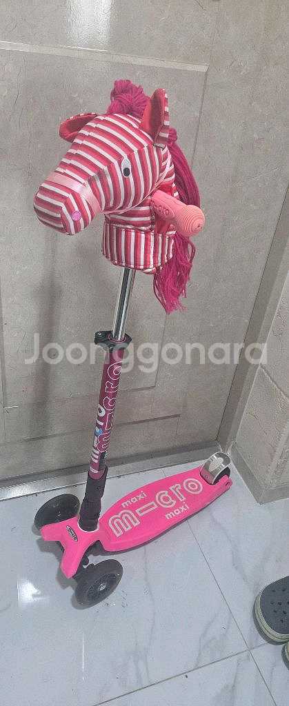 마이크로킥보드 맥시 LED 미니 다음에 태우기 좋아요 바퀴불빛 반짝반짝 잘 들어옵니다. 핑크색상이고 깨긋하게 사용했어요. 충격방지인형되는 헤드인형 포함 상태양호해요