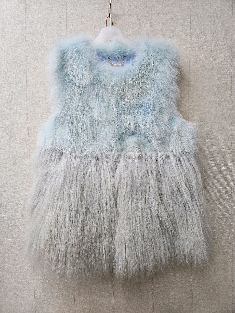 양털과 폭스퍼 모피조끼 입니다. 투톤 색상이라 더 고급스럽고 예뻐요. 부드러운 양털, 폭스퍼 소재로 퀄리티가 좋습니다. 사이즈 55~66 가슴단면 46 길이 70