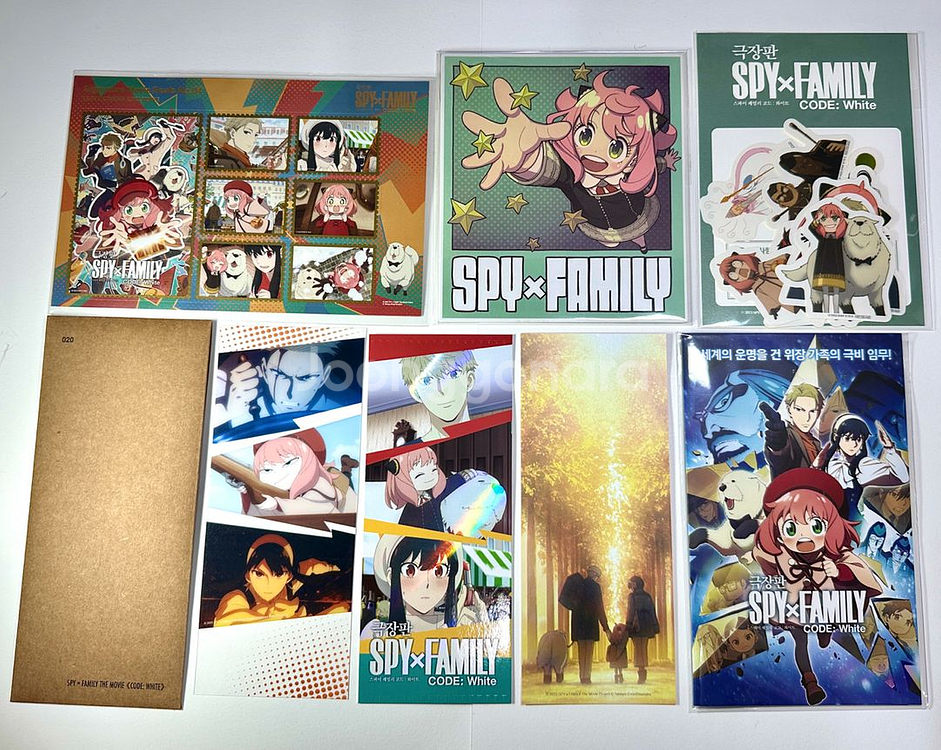 스파이패밀리 코드 화이트 극장 한정 굿즈 세트 모두 암실보관한 미개봉 새상품입니다:) 스탠드만 캐릭 확인차 열어봤어요 -TTT(미개봉,사진은 예시용 소장품) -스텔라 아냐 색지 ar카드 -롯데시네마 무비씰 -pet 스탠드 아냐 -리무버블 스티커 세트 사진 속 구성 일괄로만 판매합니다! 당일 튼튼하게 보내드려요 편하게 연락주세요☺️