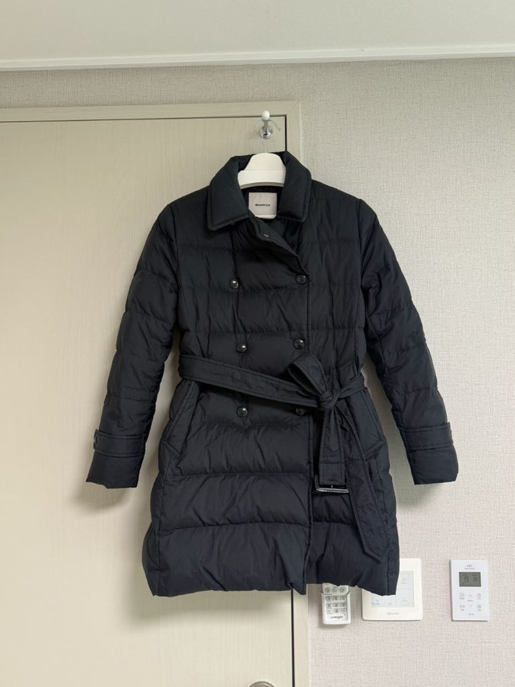 빈폴레이디스 구스 다운 패딩입니다 55사이즈구요 충전재 빵빵하게 살아있습니다 스타일은 딱떨어지는 라인이 아니라 살짝 A라인이라 벨트로 가볍게 묶으면 단정하게 또는 캐주얼하게 둘 다 가능합니다 010.육삼일2 .0506