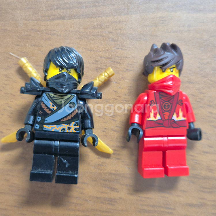 레고 닌자고 카이, 콜, 제이 미니피규어 3개 세트입니다. 사진에서 보시는 것과 같이 무기 포함입니다. 부분적으로 생활 기스 존재하고 제이 얼굴 낙서같은게 있습니다