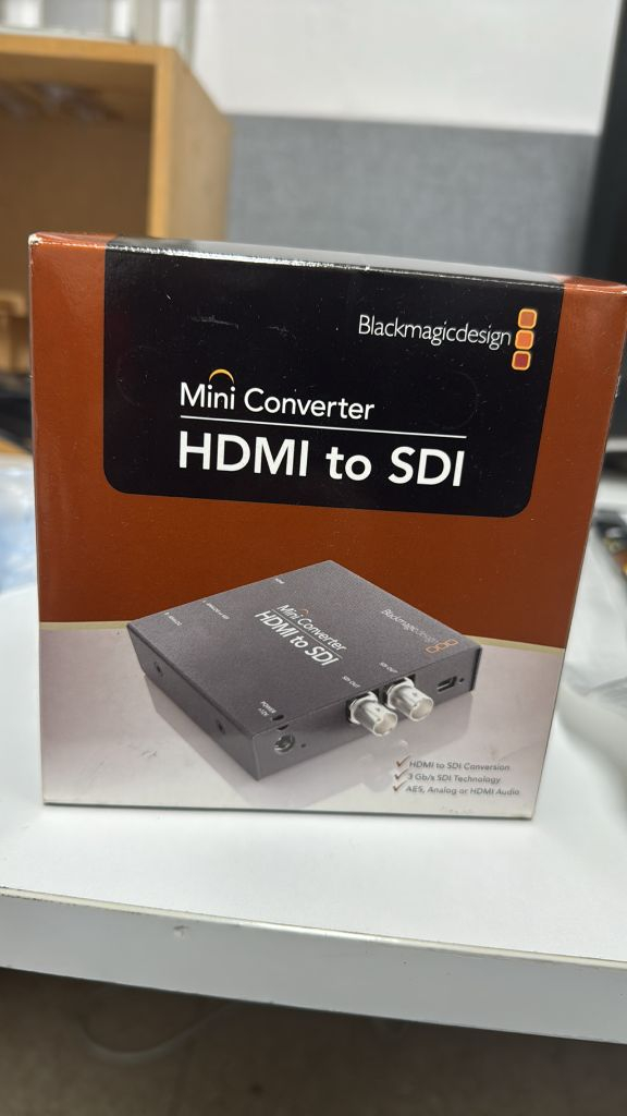 HDMI to SDI 전용 미니 컨버터예요. 박스와 어댑터가 포함되어 있고 상태 양호합니다. 영상 촬영이나 스튜디오 작업에 유용한 제품이에요.