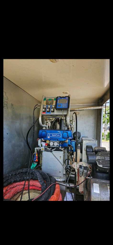 폴리우레아 방수 장비 및 차량 판매합니다. 그레이코 리액터 E-XP2i 발전기 일체형 모델입니다. 현장에서 별도 전기 연결 없이 사용가능합니다. *본체, 드럼펌프 1세트, 5마력 콤프레샤, 퓨전건 외 기아 봉고lll 1.2톤 탑, 파워게이트有 판스프링 및 타이어보강완료 편하게 연락주세요.